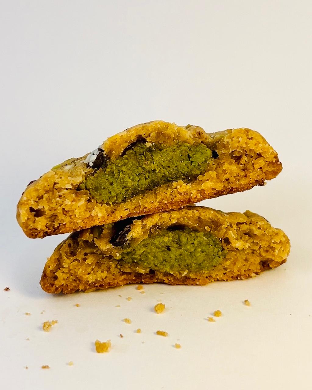 At the center of every cookie is the signature highlight: a homemade pistachio paste, slow ground to a soft texture and stuffed inside so every bite opens up with a rich, creamy pistachio core.